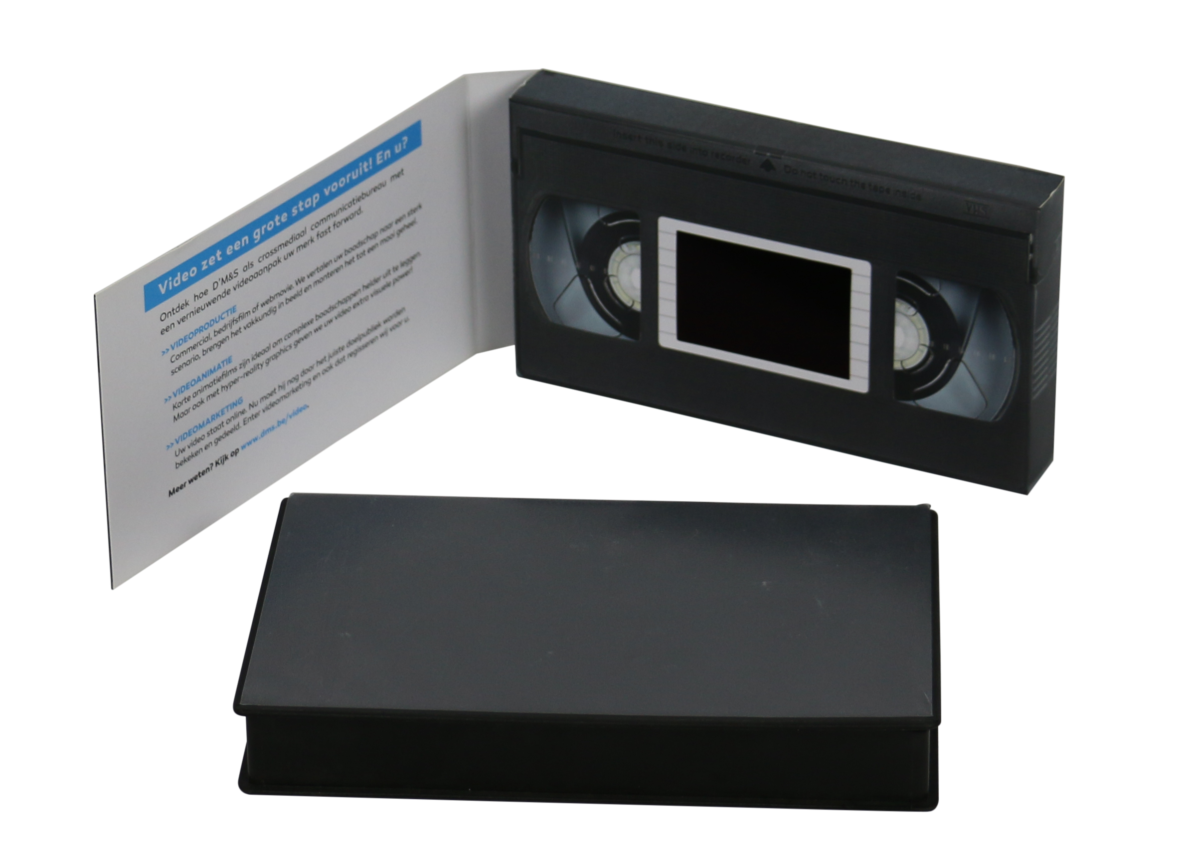 Een videobrochure is een openvouwbare kaart waarin een LCD-scherm, luidspreker en batterij geïntegreerd zijn. Wanneer de brochure geopend wordt, start automatisch een video. Zo combineer je tastbare beleving met dynamische content.